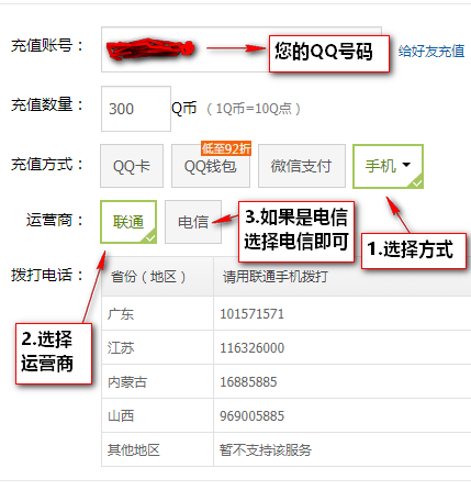 四、给QQ号充值Q币,如下图,拨打对应电话